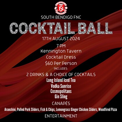 The Bloods Cocktail Ball Is Back! Get ready for a night of unforgettable fun! We're serving up six delicious frozen cocktail flavours, and so much more! For the amazing price of $50- Your ticket includes: A frozen cocktail on arrival Delicious canapés Live entertainment all night long Mocktail options available too – there's something for everyone!